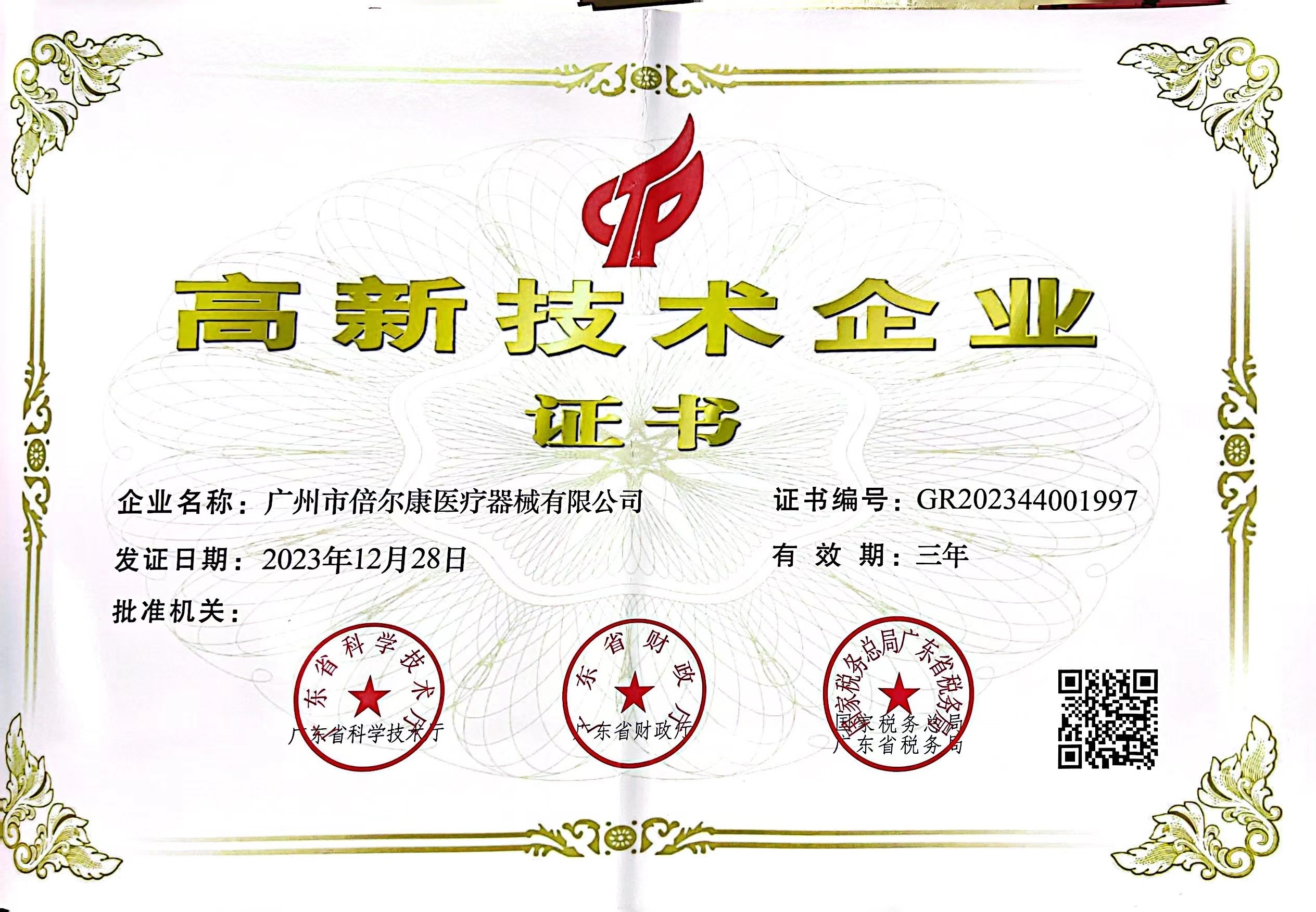 高新技術(shù)企業(yè)證書