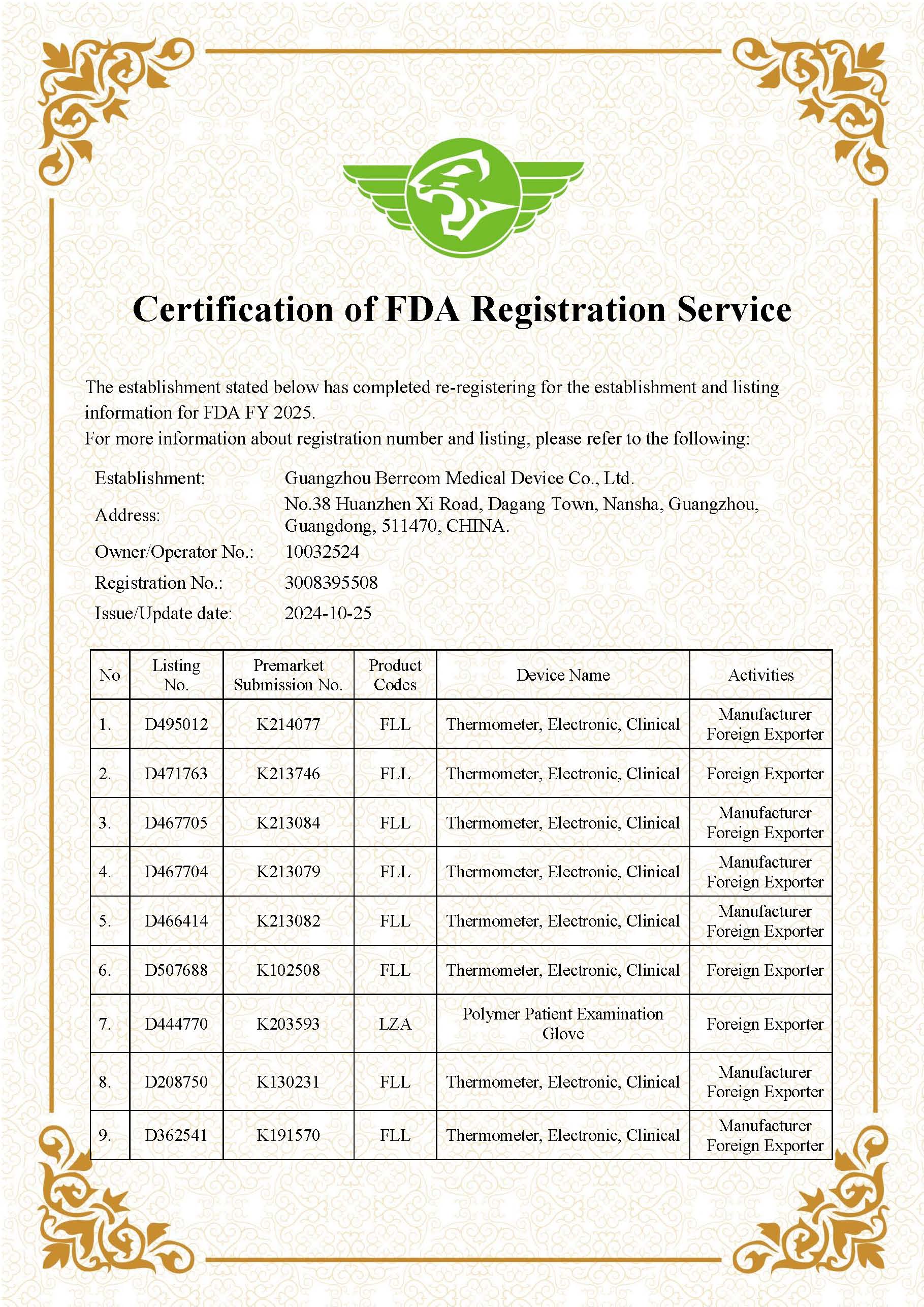 24年來,集團始終產(chǎn)品質(zhì)量作為企業(yè)第一生命力,把技術(shù)創(chuàng)新作為第一生產(chǎn)力,采用國際先進(jìn)水平的智能化生產(chǎn)系統(tǒng),匯聚眾多優(yōu)秀的現(xiàn)代化生產(chǎn)高技術(shù)人才按照國際化標(biāo)準(zhǔn)建立質(zhì)量管理體系。集團通過ISO 13485認(rèn)證,產(chǎn)品符合國內(nèi)醫(yī)療標(biāo)準(zhǔn)和國際質(zhì)量認(rèn)證醫(yī)療CEFDA標(biāo)準(zhǔn)以及歐盟環(huán)保ROHS等標(biāo)準(zhǔn),榮獲多項技術(shù)專利和醫(yī)療行業(yè)榮,被廣東省科學(xué)技術(shù)廳核批為 “廣東省醫(yī)用紅外體溫測量工程技術(shù)研究中心”。