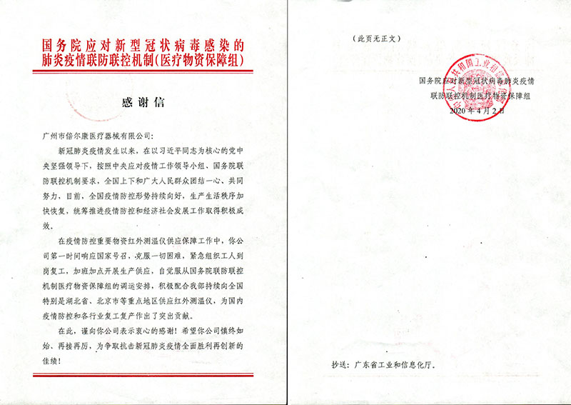 紙短情長,感謝信的背后是國家工信部對倍爾康馳援疫情防控工作的肯定與贊揚,倍爾康將繼續(xù)以使命擔當與全國人民共克時艱,為打贏疫情防控戰(zhàn)不斷努力!