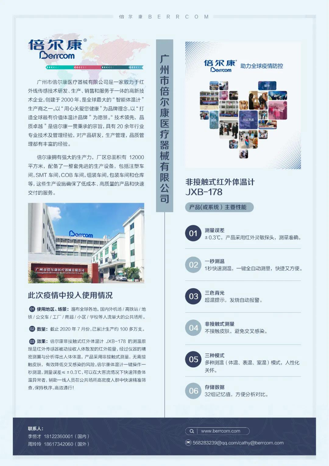 倍爾康及經典產品JXB-178就在《抗疫儀器儀表及系統匯編-紅外測溫產品專輯》中。
